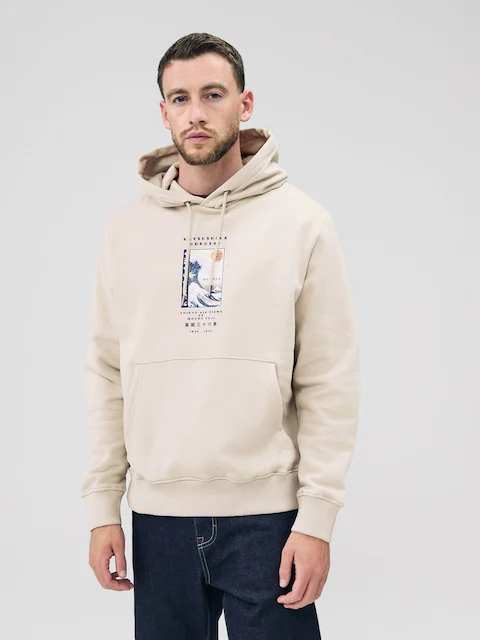 Neutral Ecru Overhead Hoodie Hokusai Graphic License