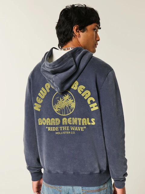 Hollister Blue Logo Waffle Lined Boxy Zip-Up Hoodie