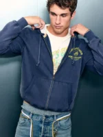 Hollister Blue Logo Waffle Lined Boxy Zip-Up Hoodie