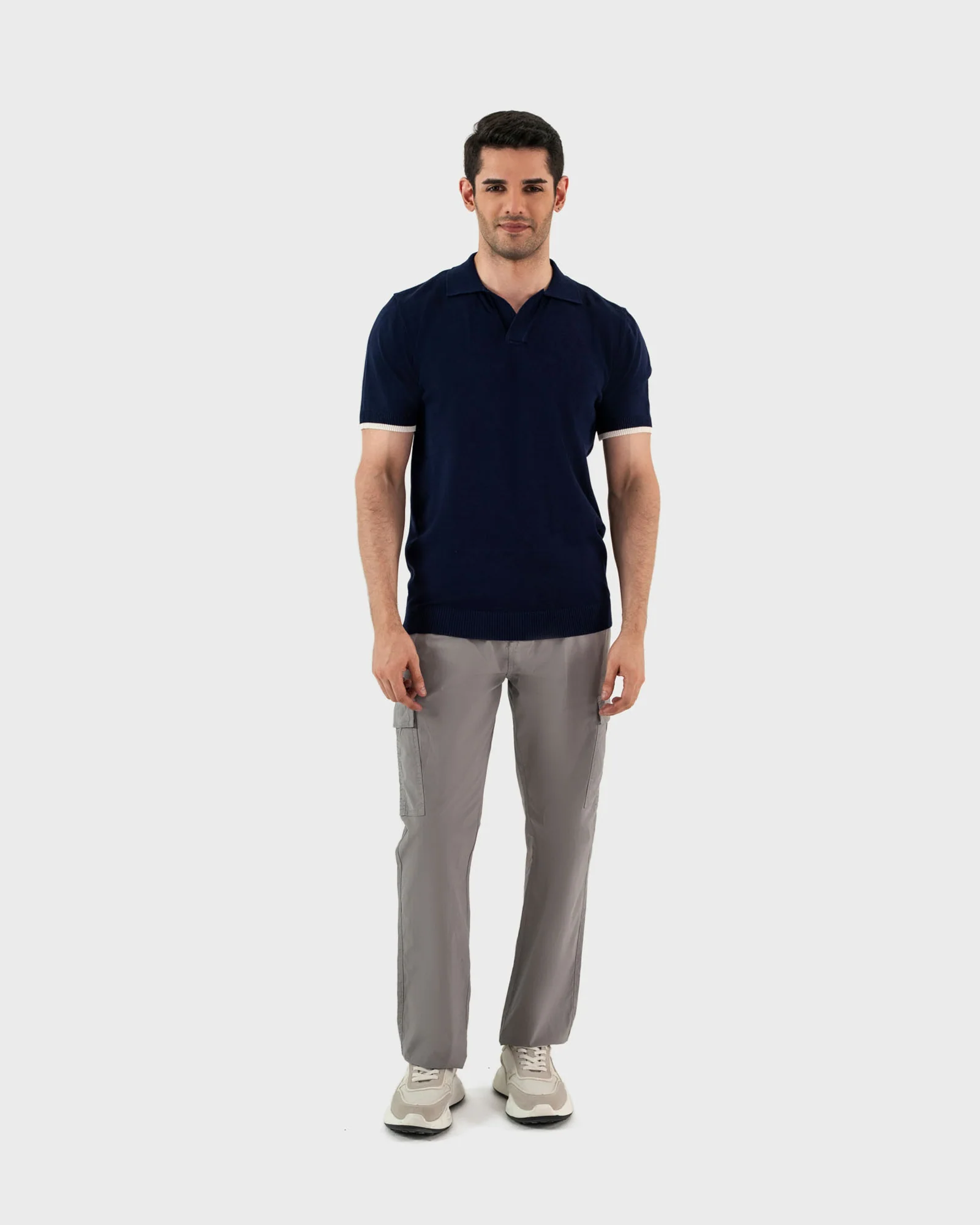 This men’s basic polo tee with tipping features soft sweater knit fabric, offering a cozy and textured feel. Its relaxed fit and subtle detailing make it perfect for casual wear with a touch of refined comfort.