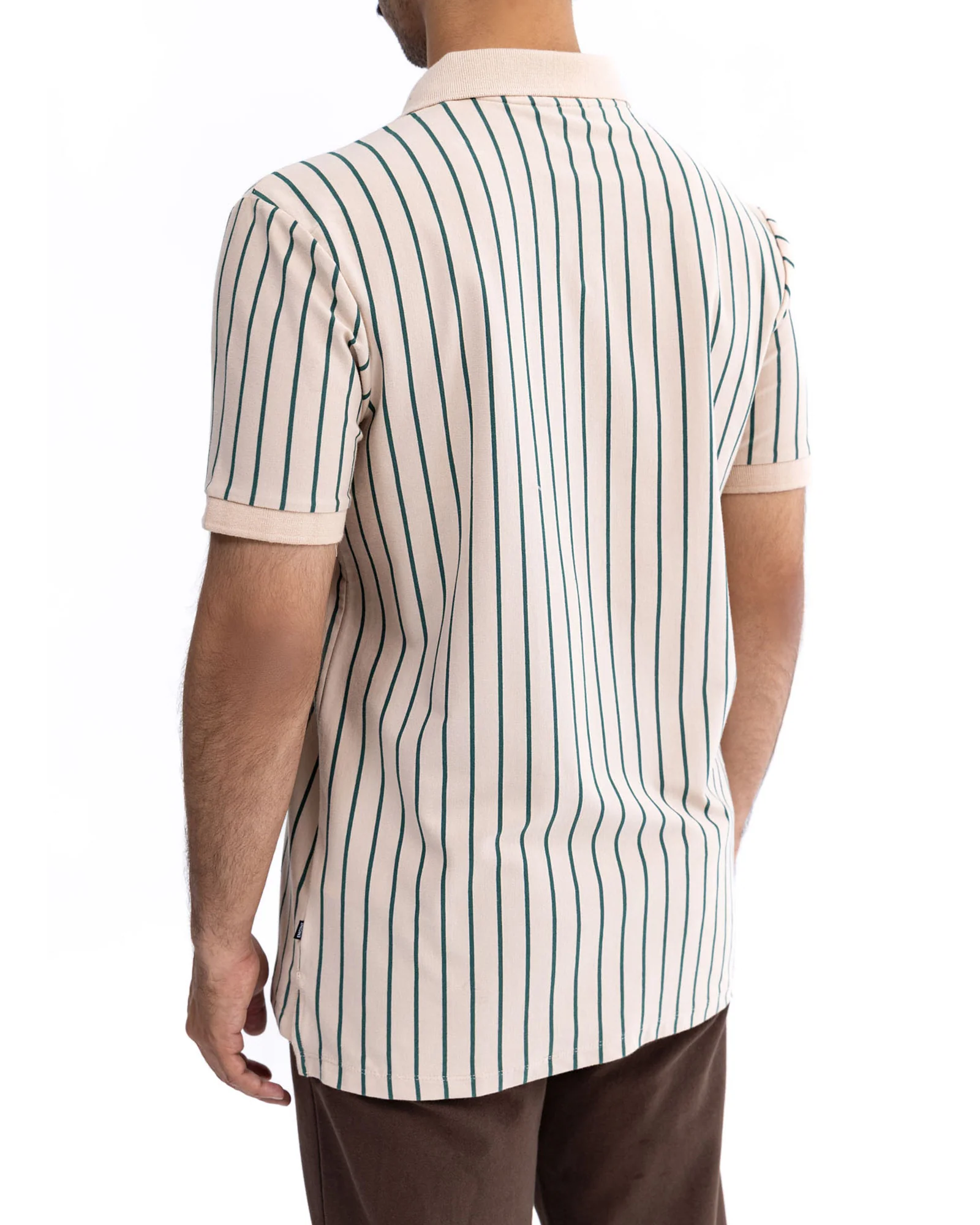 This Striper Polo S/S (Short Sleeve) is made from soft yarn-dyed jersey fabric, ensuring long-lasting color and comfort. The classic stripe design adds a timeless touch to your everyday wardrobe with a casual yet refined appeal.