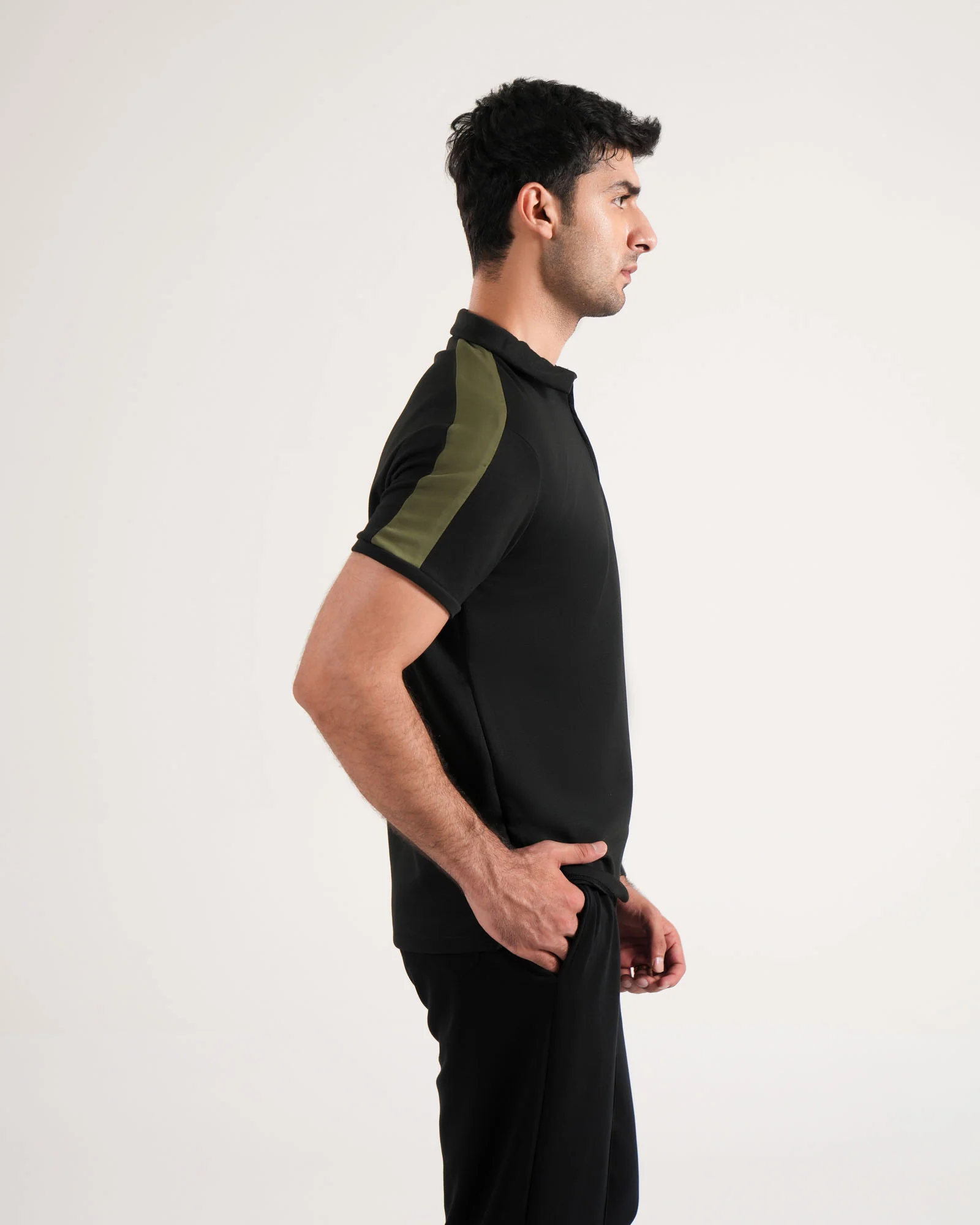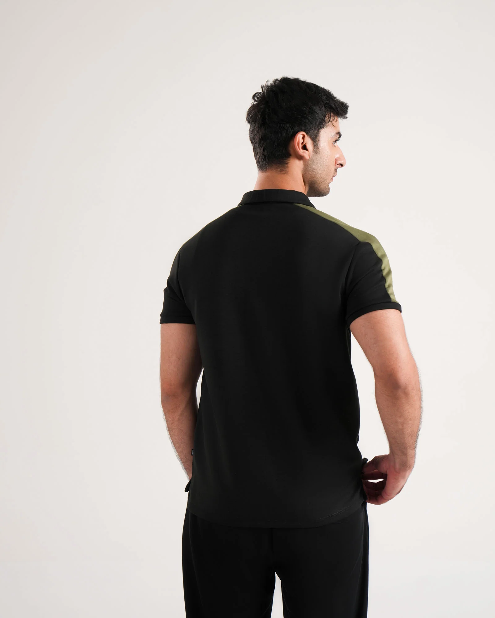 Step up your style with this men’s panel polo tee, crafted from structured bonded fabric for a premium look and feel. The contrast panels add a modern edge, perfect for smart-casual settings and everyday sophistication.