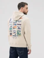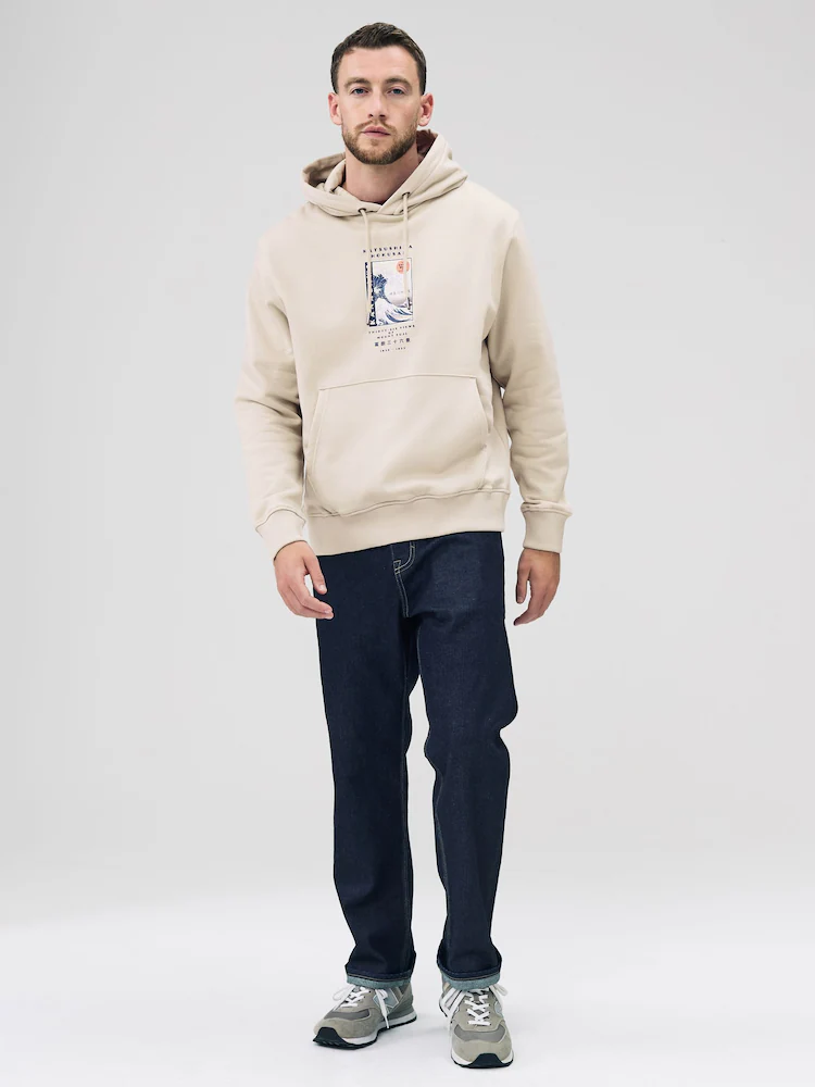 Indulge in comfort without compromising on style. Made with cotton-rich soft fabric, this long-sleeve graphic hoodie comes in a neutral ecru/offwhite. It offers a classic fit and ribbed hems, featuring a stylish license Hokusai design.