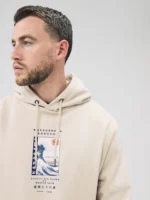 Neutral Ecru Overhead Hoodie Hokusai Graphic License
