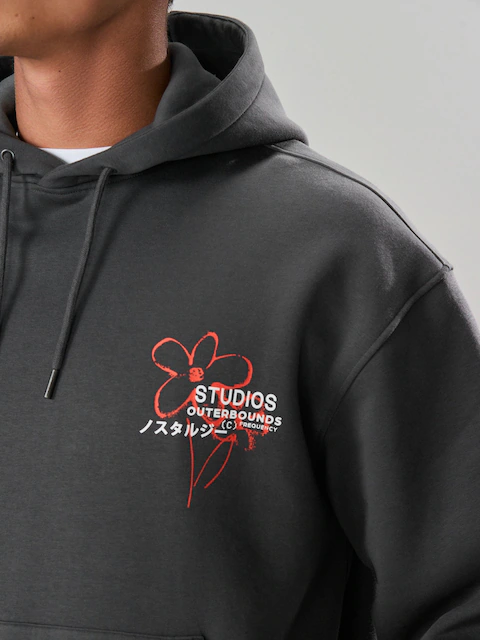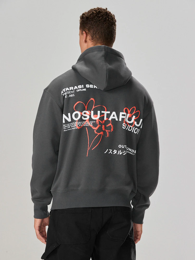 Slate Grey Graphic Print Hoodie